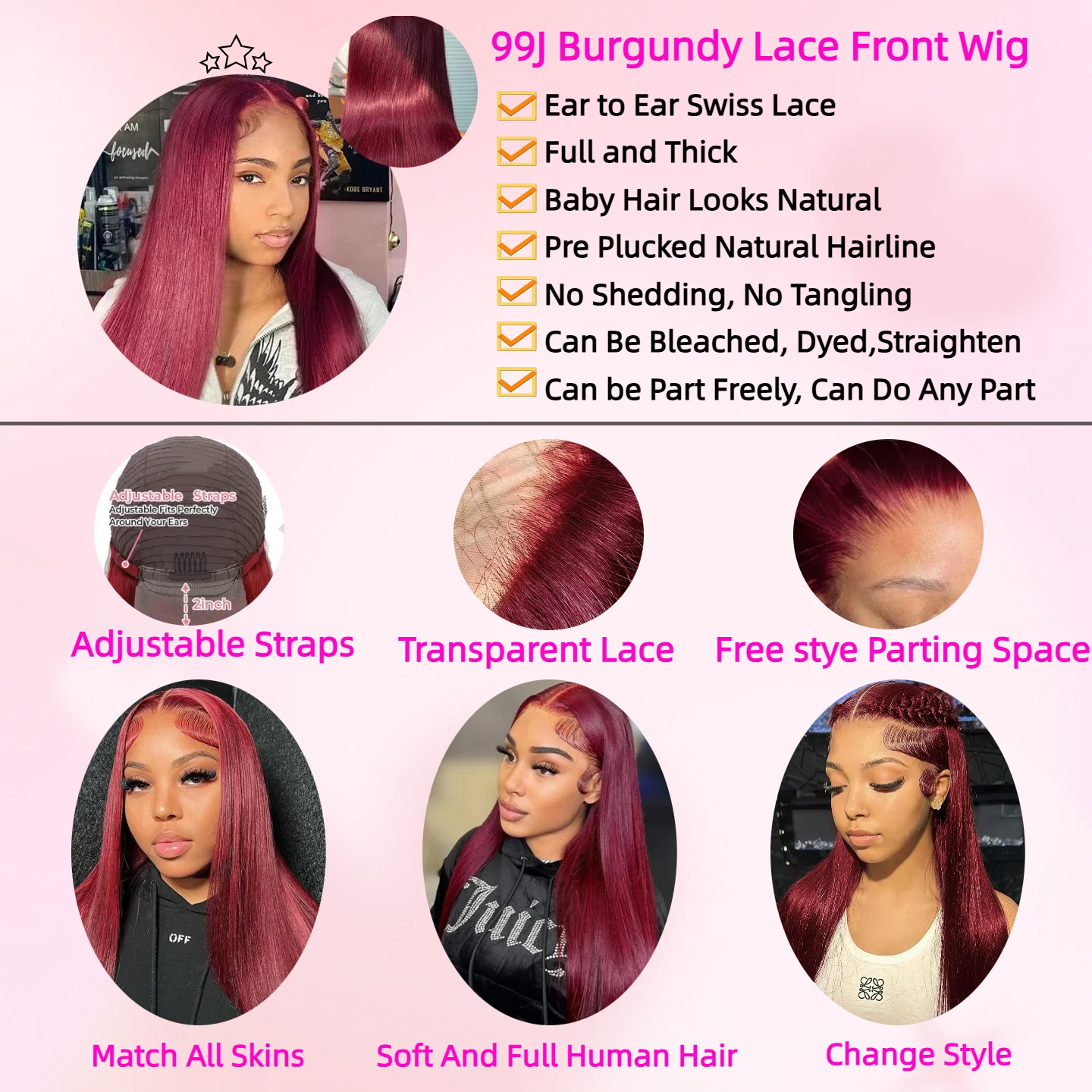 99J Colored Lace Front Human Hair Wigs Straight Burgundy 13x4 Glueless